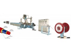 The production line is used in producing plastic-aluminum composited pipe. The line adopts ultrasonic welding and co-extruding technology to form pipes once at a time. The produced aluminum -plastic composited pipes are widely used in supply of cold/ hot tap-water, all kinds of acid and alkali salt solutions, gas, oxygen, compressed air and other gas.